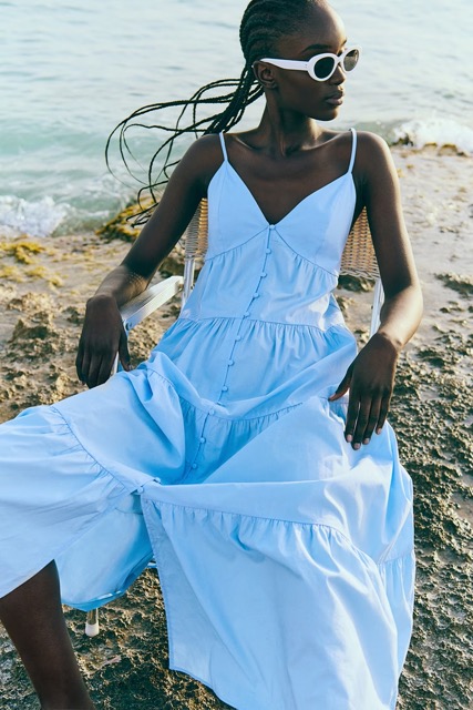- Flowy Dresses: Spring/Summer 2025 is all about comfort and movement. A soft, blue maxi or midi dress can be dressed up or down, while its airy fabric keeps you cool.