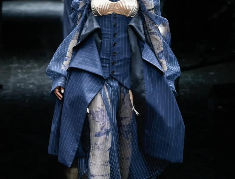 Contrary to expectations, denim emerged as a surprising foundation for couture looks. Heuritech, a data-driven fashion trend forecasting firm, highlighted how designers like Schiaparelli and Ronald Van Der Kamp elevated and repurposed denim to seamlessly fit within the realm of couture.