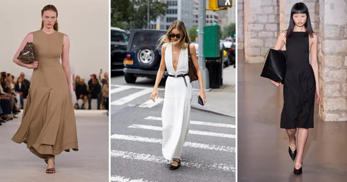 Minimalist 90s dresses are the ultimate chameleons, effortlessly transitioning from work to weekend: