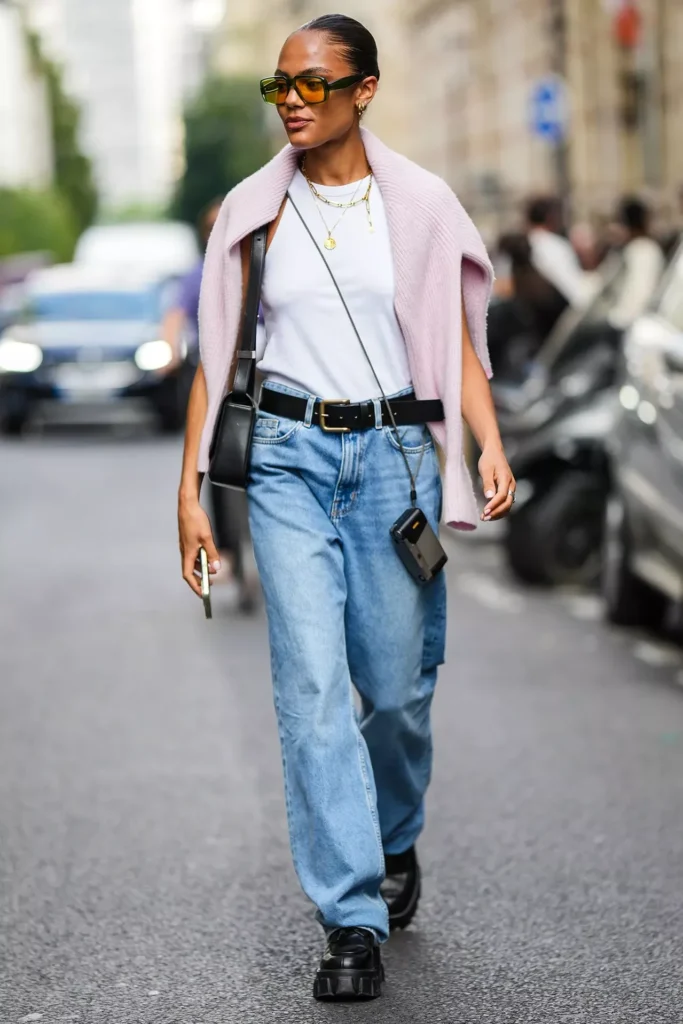- Grunge style: Combine carpenter jeans with an oversized t-shirt, leather jacket, and chunky boots.